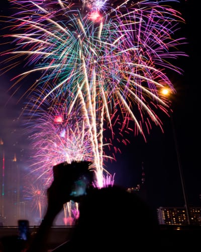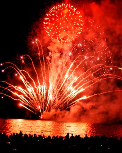 Full explosion and effects of light and colorful crackles.